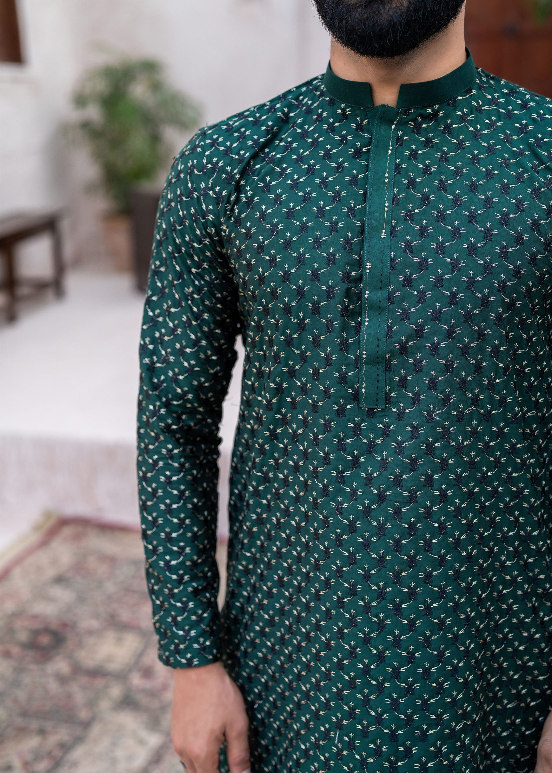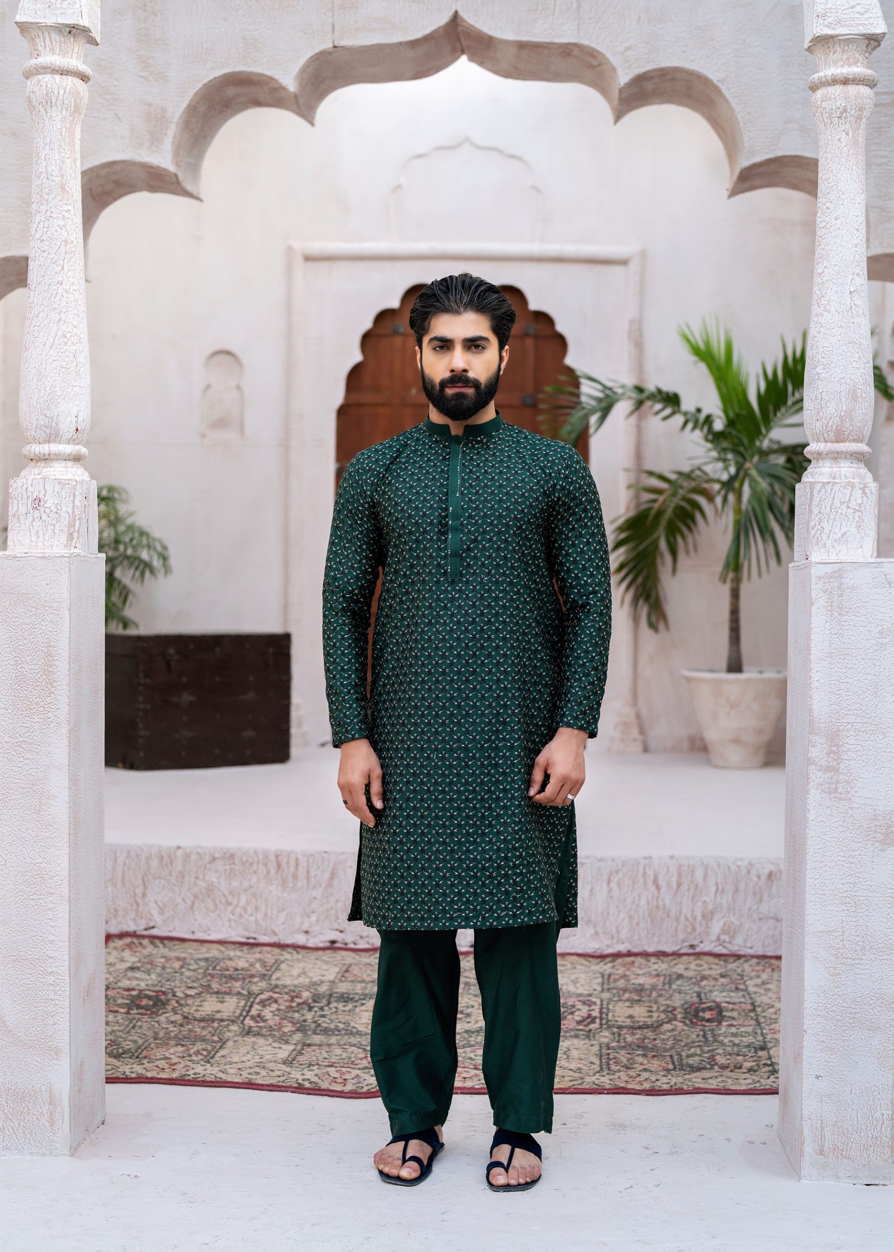 A premium textured kurta, featuring a sleek, tailored fit and a rich fabric with an elegant self-patterned texture.
